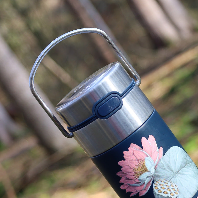 La borraccia termica a doppia parete in acciaio inossidabile mantiene le tue bevande calde calde per molte ore mentre le bevande fredde rimangono a lungo fresche. Design esclusivi con un'esperienza tattile e un vero colpo d'occhio. Perfette da utilizzare durante un'escursione, un tour in bicicletta, lo sport, lo yoga, il lavoro, all'università, in campeggio o a scuola. La pratica maniglia è perfetta per il trasporto e il coperchio pieghevole (chiusura sportiva) si apre e si chiude facilmente con una mano. Grazie al setaccio a 2 pezzi ultrafine perforato al laser, puoi preparare direttamente tè ed il caffè nella tua borraccia termica. La chiusura è a prova di perdite, per sicurezza consigliamo un trasporto in posizione verticale. La borraccia termica non è adatta per microonde/lavastoviglie.
