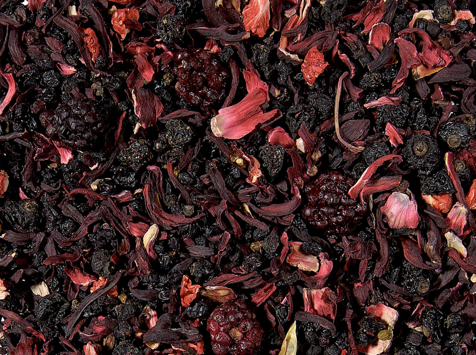 coccole di sambuco, petali di ibisco, ribes nero, aroma, more intere liofilizzate, lamponi interi liofilizzati, pezzetti di fragola liofilizzata.
