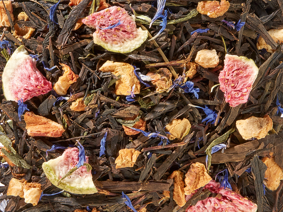 tè nero (56 %) Black Sencha, pezzetti di mela, tè nero (10 %), spicchi di fico liofilizzato, tè verde (5 %) Sencha, aroma, fiordalisi
