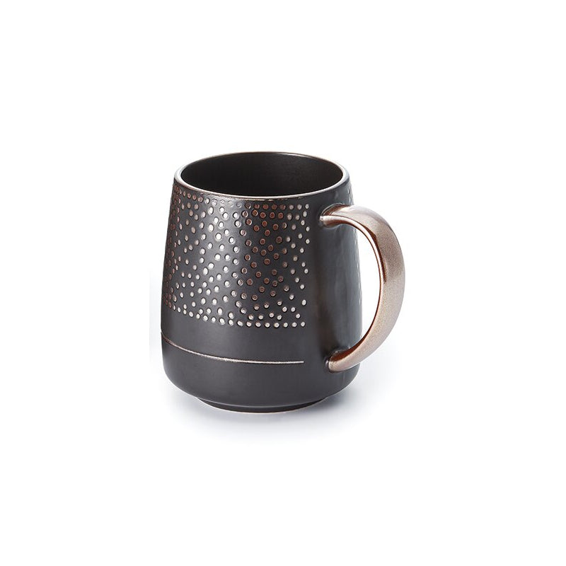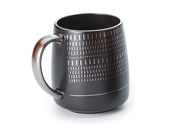 Il nero è tornato! Questa splendida tazza in ceramica con effetto tattile in rilievo si ispira all'attuale tendenza Modern Black. Questa è caratterizzata da elementi di design scuri, principalmente opachi, che creano un look sofisticato ed esclusivo. La decorazione grafica color rame crea un bellissimo contrasto con il colore di base nero, che evidenzia perfettamente l'effetto metallico. La forma della tazza leggermente conica e moderna con una capacità di riempimento di 0,5 l consente di gustare il tè senza doverlo rimettere in infusione frequentemente ed è ideale per grandi bevande al caffè miste come il latte macchiato.