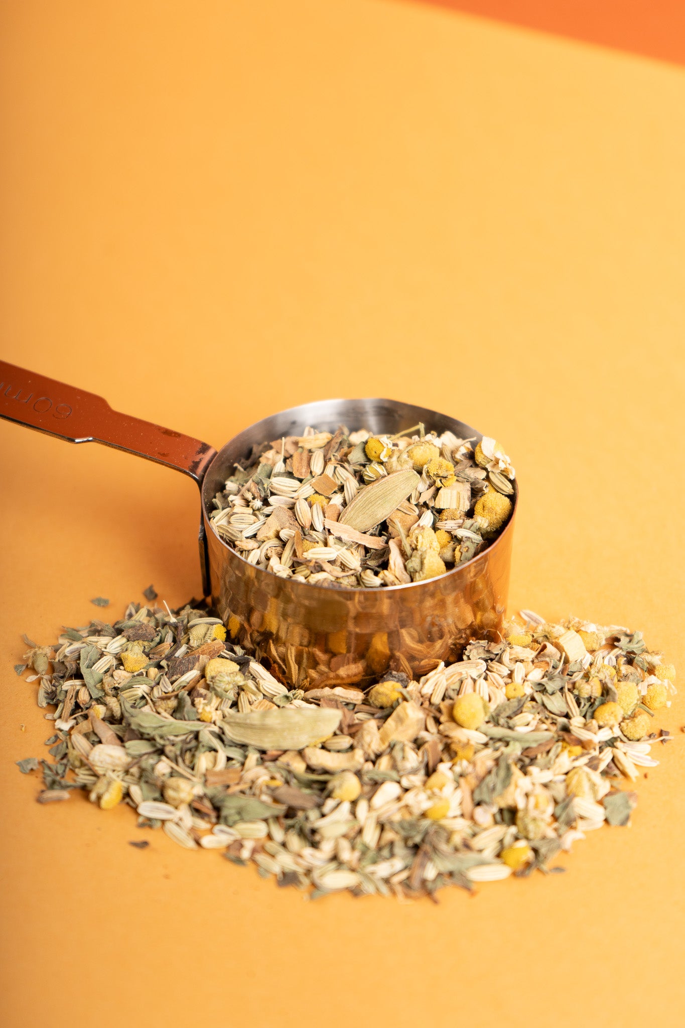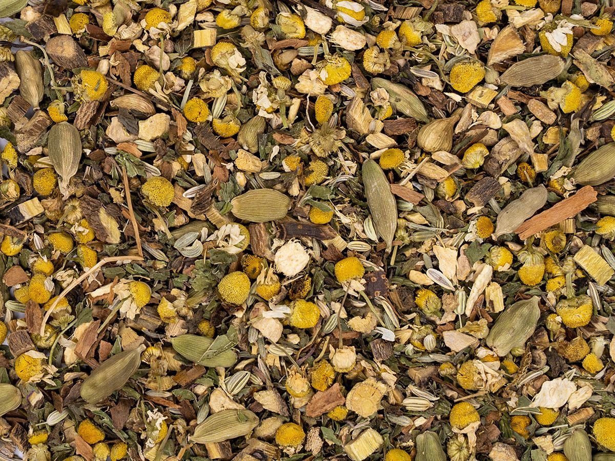 radice di liquirizia*, finocchio*, pezzetti di zenzero*, camomilla*, menta piperita*, cardamomo intero*, pezzetti di cannella*, semi di anice*.
